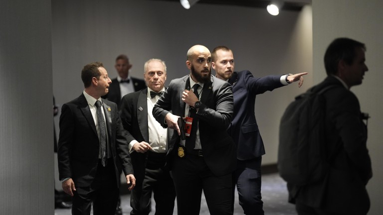 По данни на Associated Press мъж, въоръжен с огнестрелни оръжия и ножове, е нахлул във фоайето пред залата, в която се е провеждала вечерята, и се е насочил към балната зала. Тайните служби са го спрели и задържали, а един служител на реда е бил прострелян в бронежилетка и се възстановява. Заподозреният е идентифициран от представители на правоохранителните органи като 31-годишния Коул Томас Алън от Торънс, Калифорния.