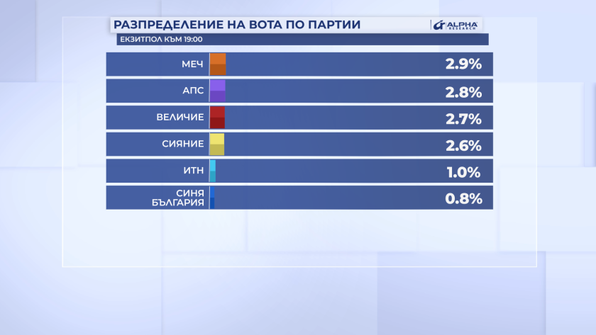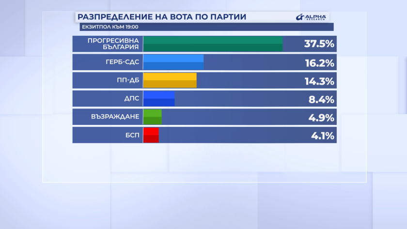 Резултатите от екзитпола на "Алфа Рисърч" към 19.00 часа: